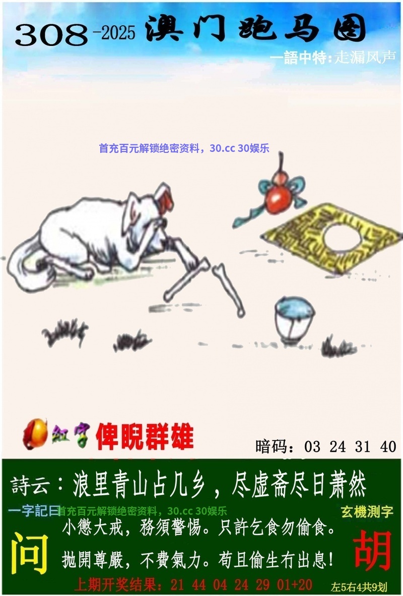 307期:绝杀三肖★狗猪鼠★开:狗20